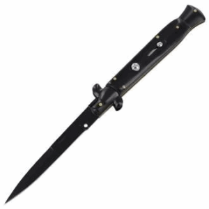 8.75 Inch Black Italian Stiletto Switch Pocket Knife Black Pearl