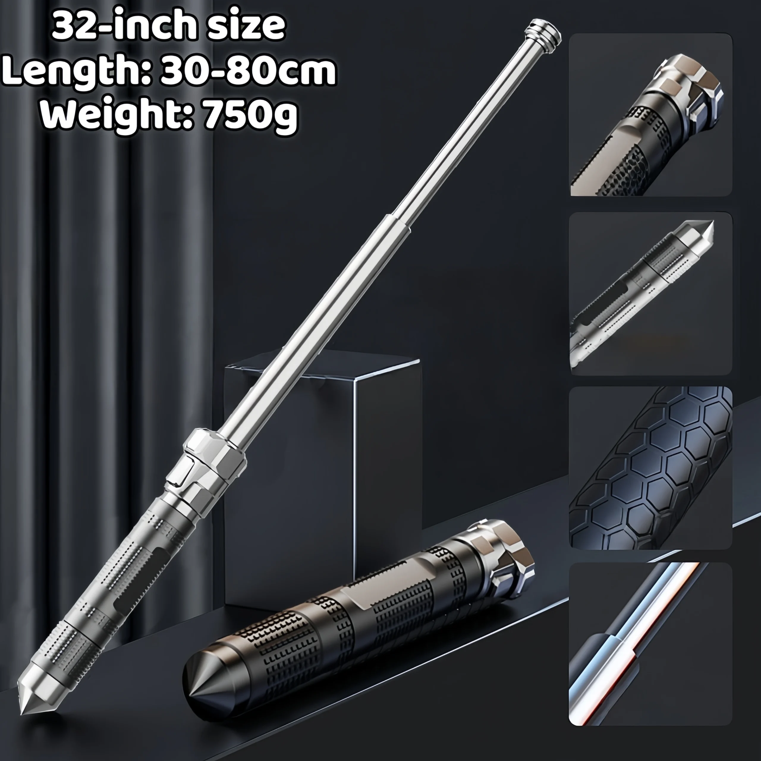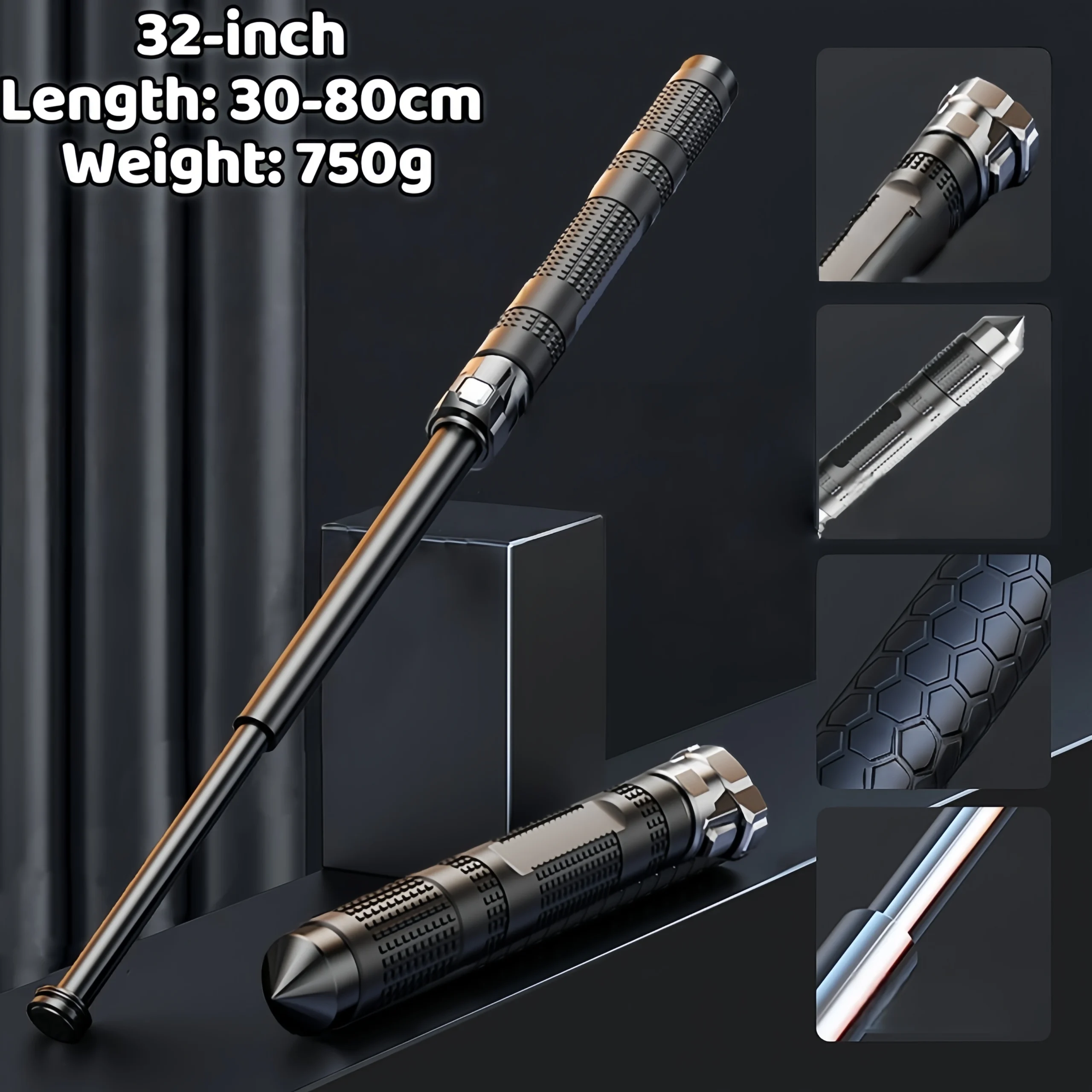 Hummer handle paratrooper self-defense baton three-section telescopic baton rubber emergency baton with window-breaking self-defense baton